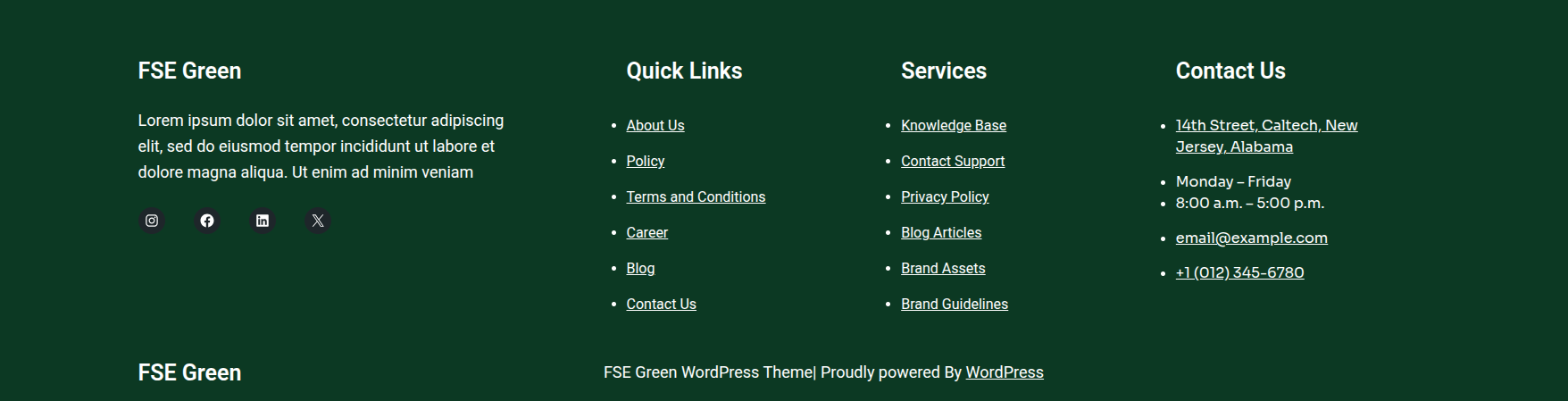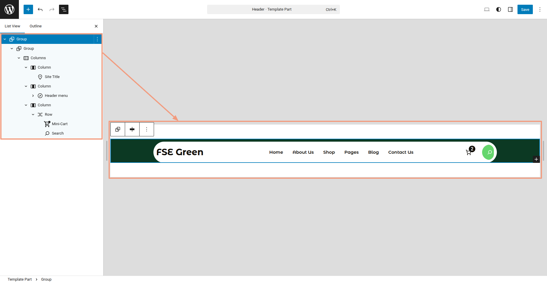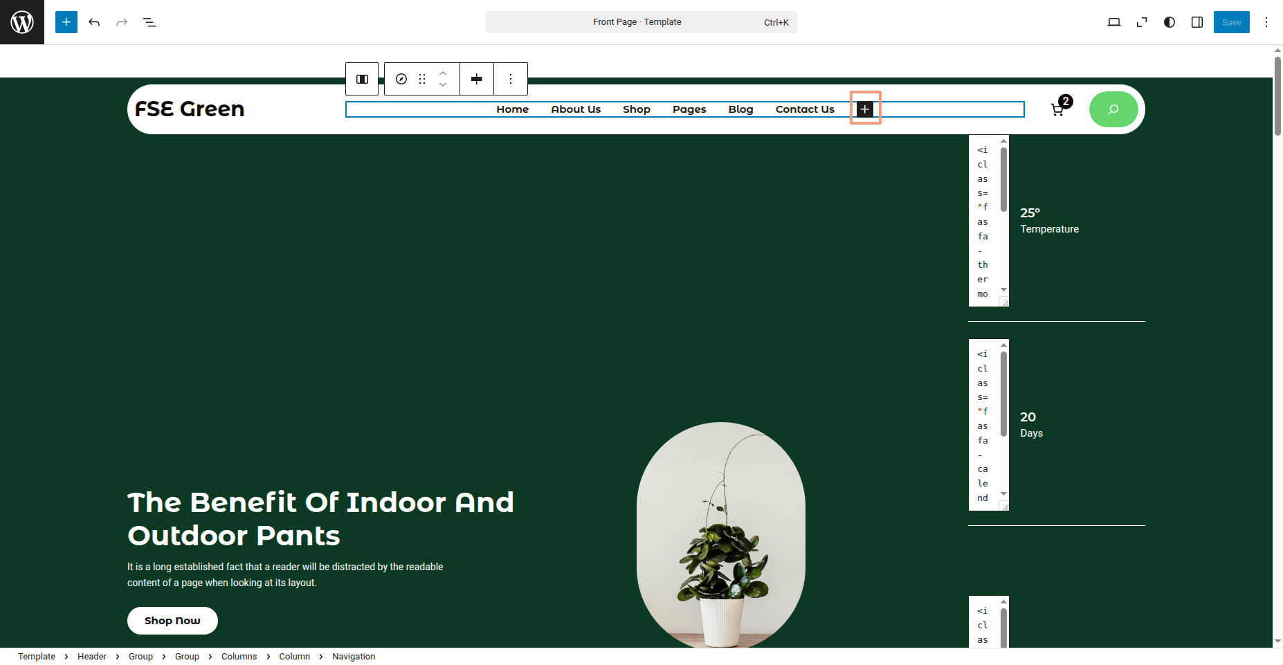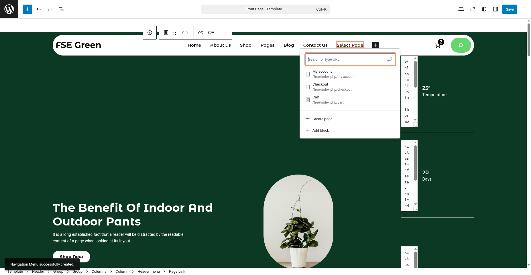 After the sidebar opens, choose "FSE Green" from the dropdown menu. Every theme pattern available for usage on every page.