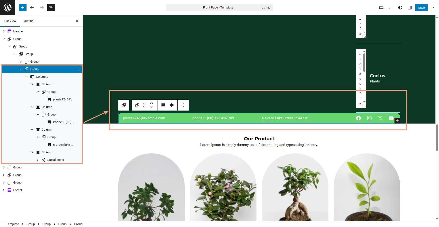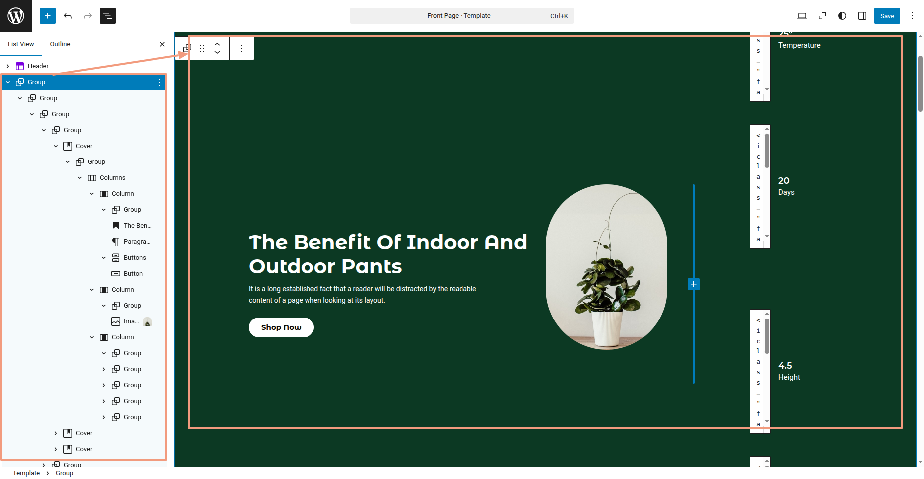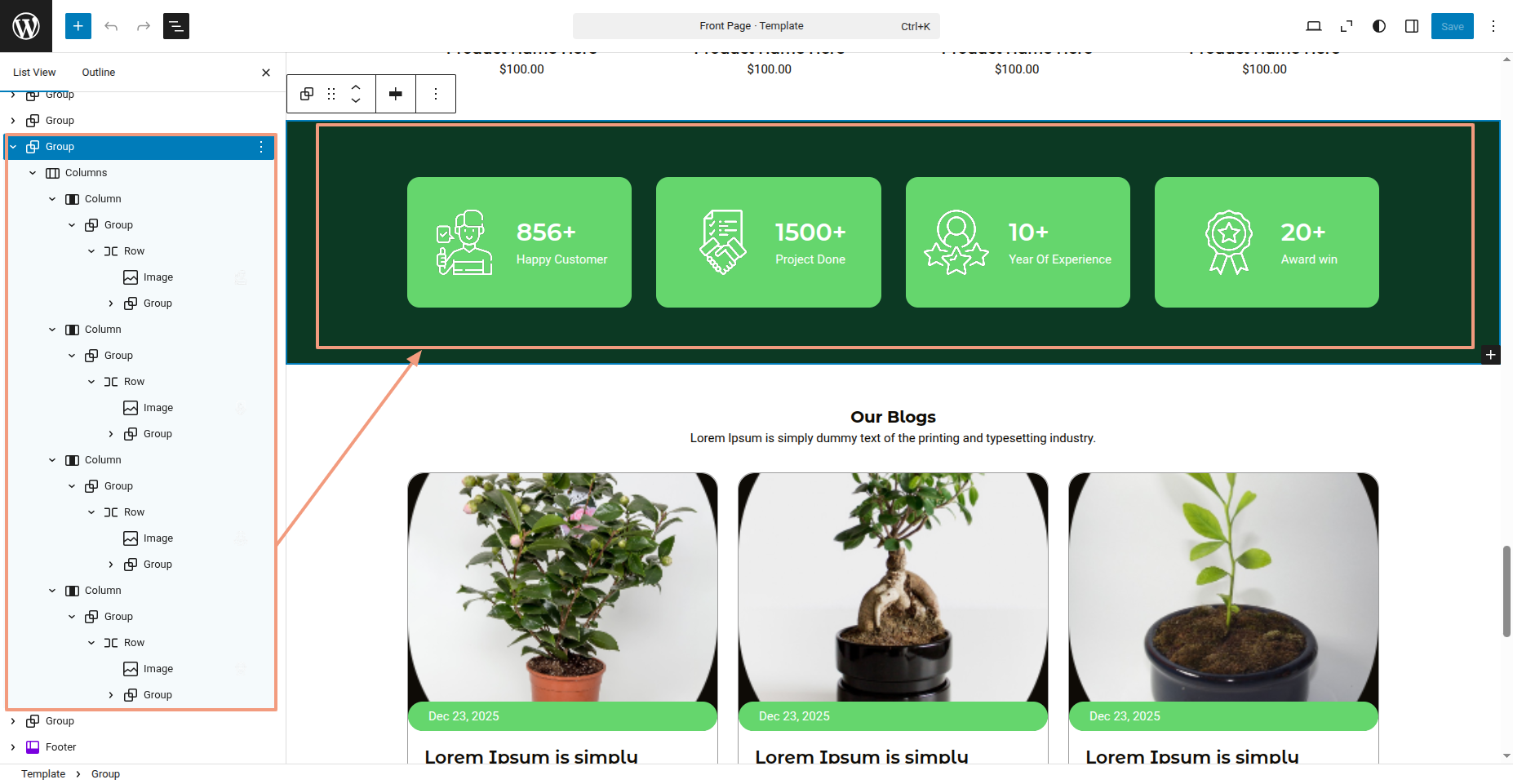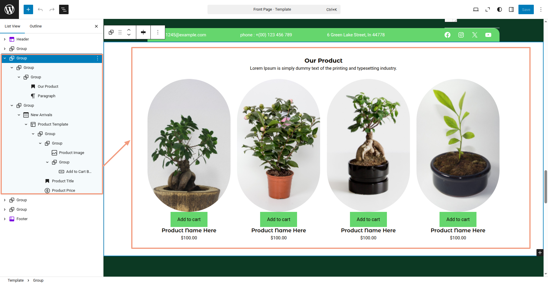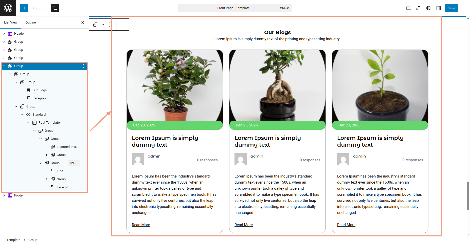 After the sidebar opens, choose "FSE Green" from the dropdown menu. Every theme pattern available for usage on every page.