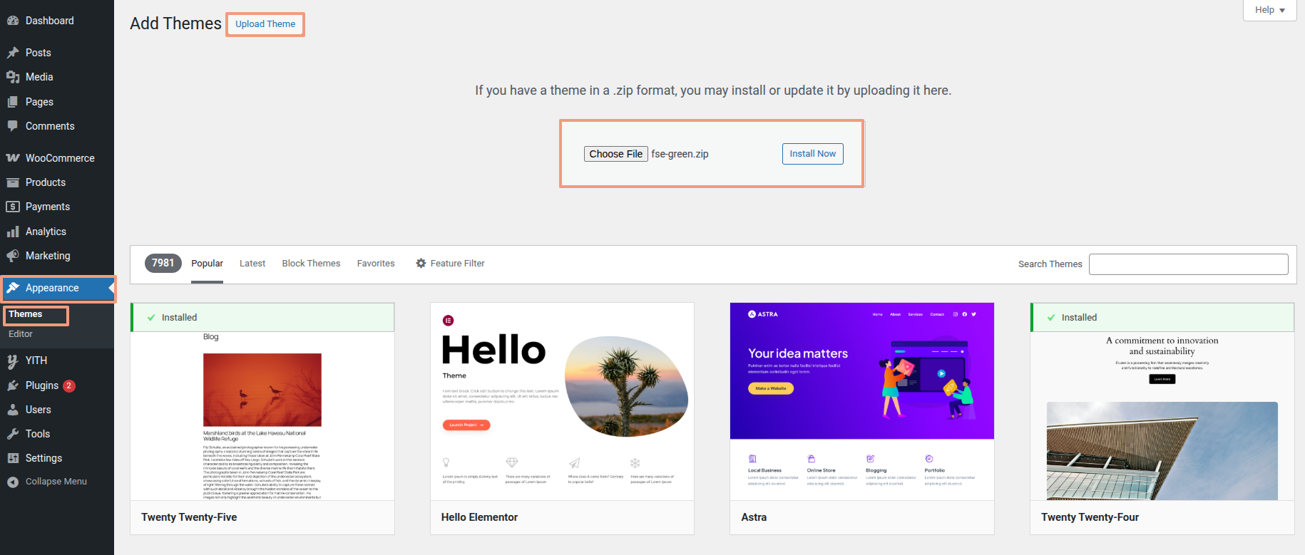 A WordPress plugin can be manually installed from a fse-green.zip file. using the methods outlined below.
