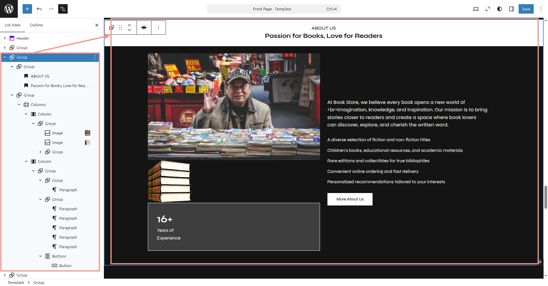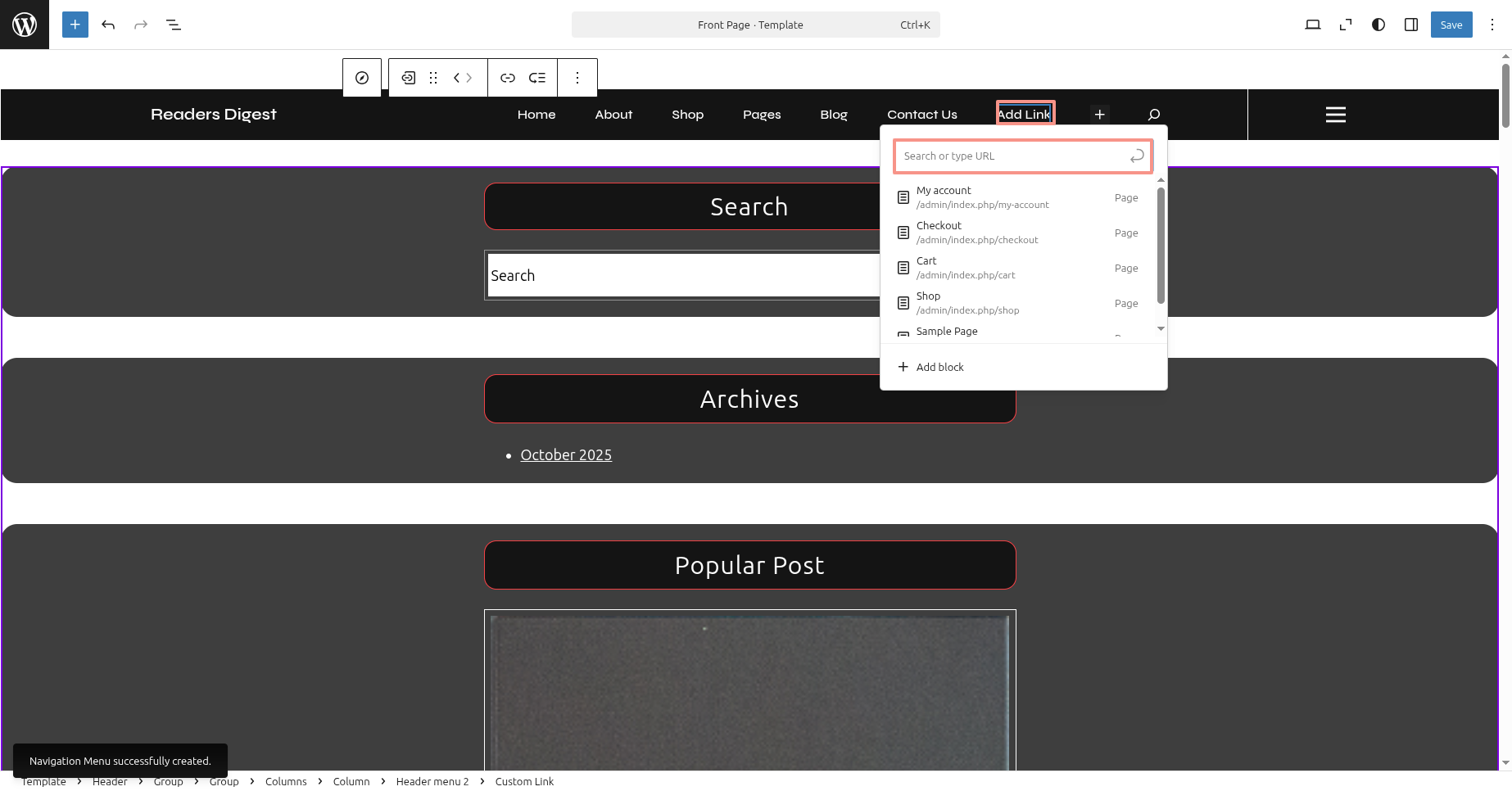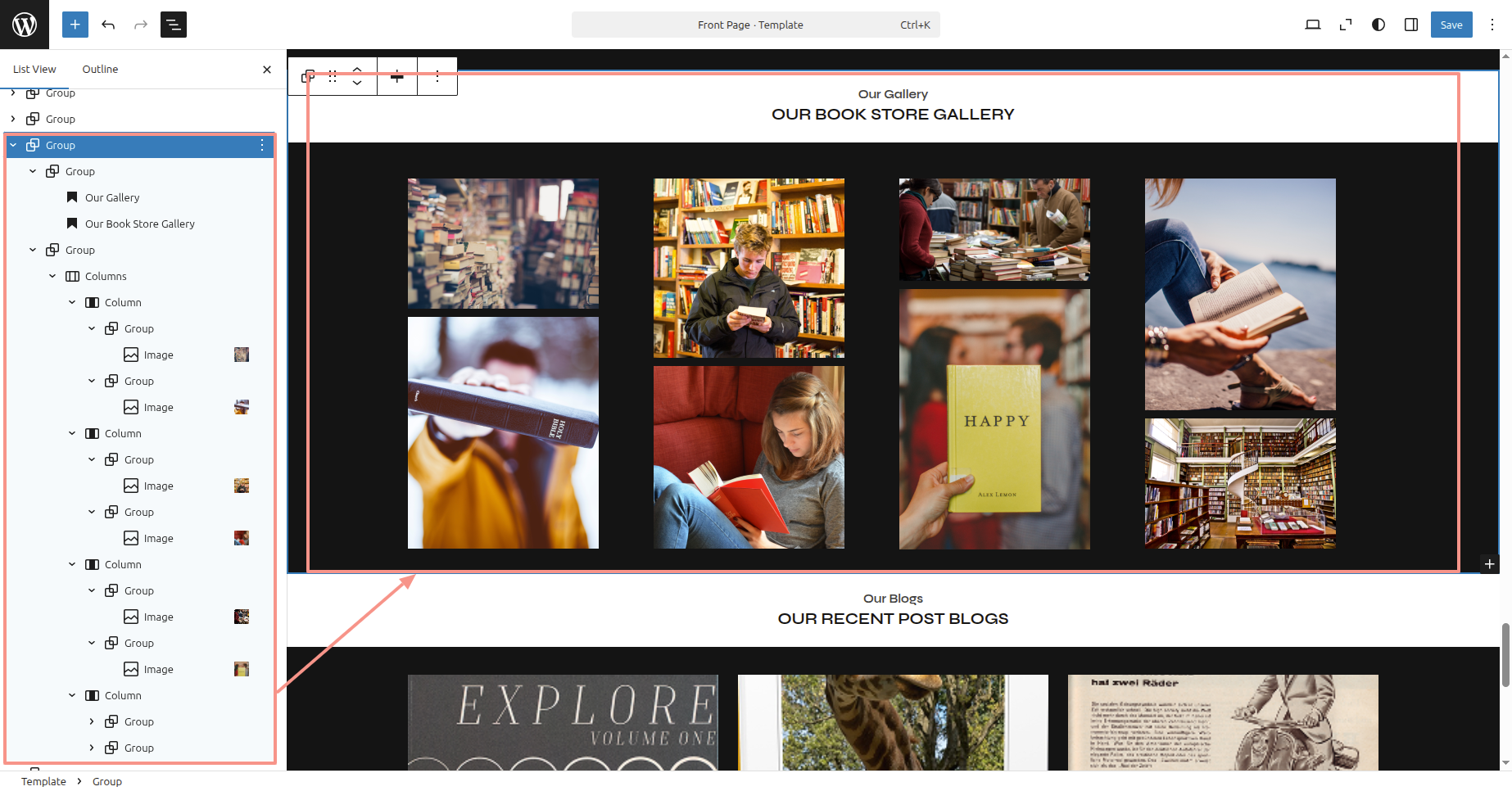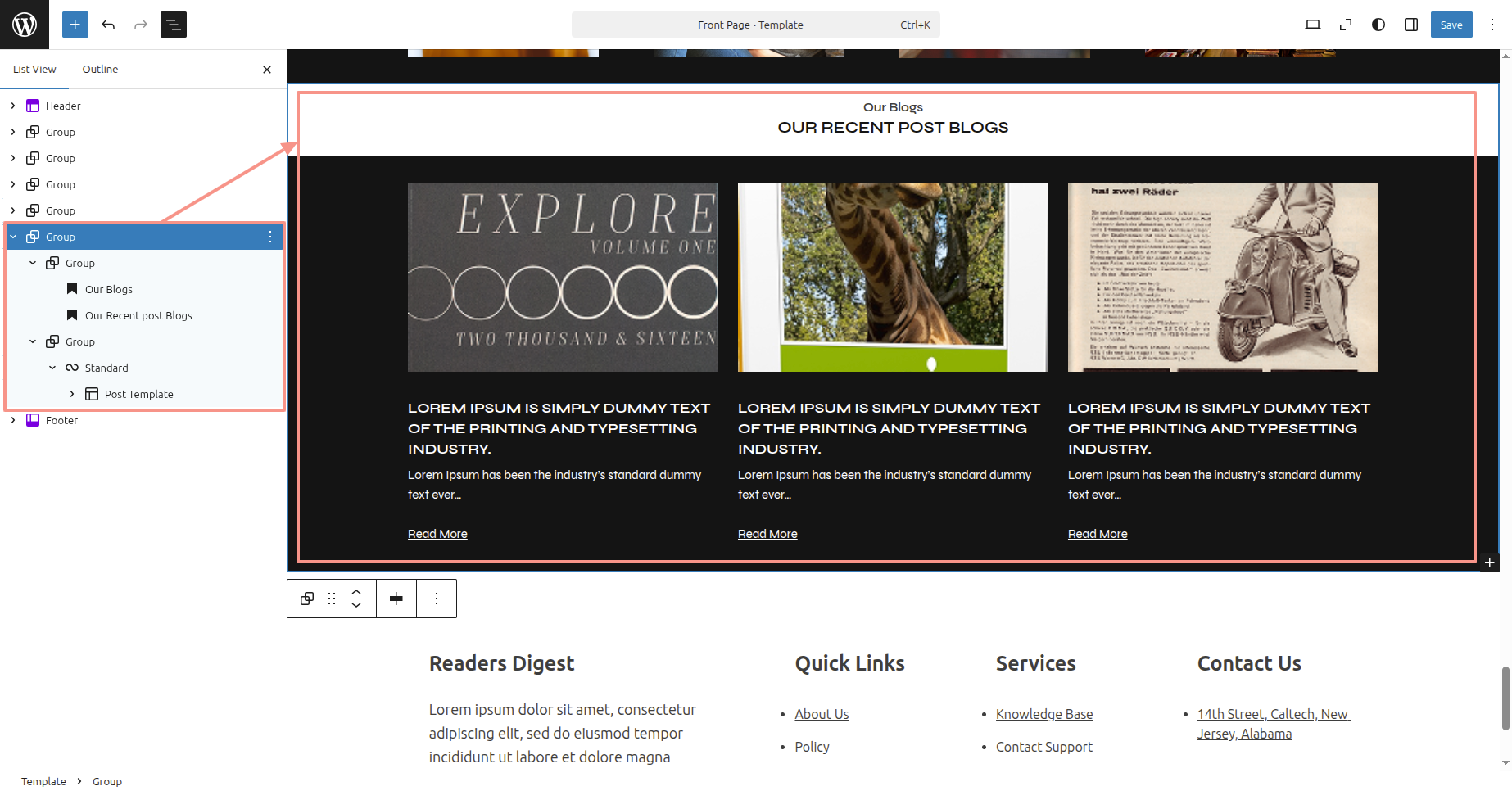 After the sidebar opens, choose "Readers Digest" from the dropdown menu. Every theme pattern available for usage on every page.