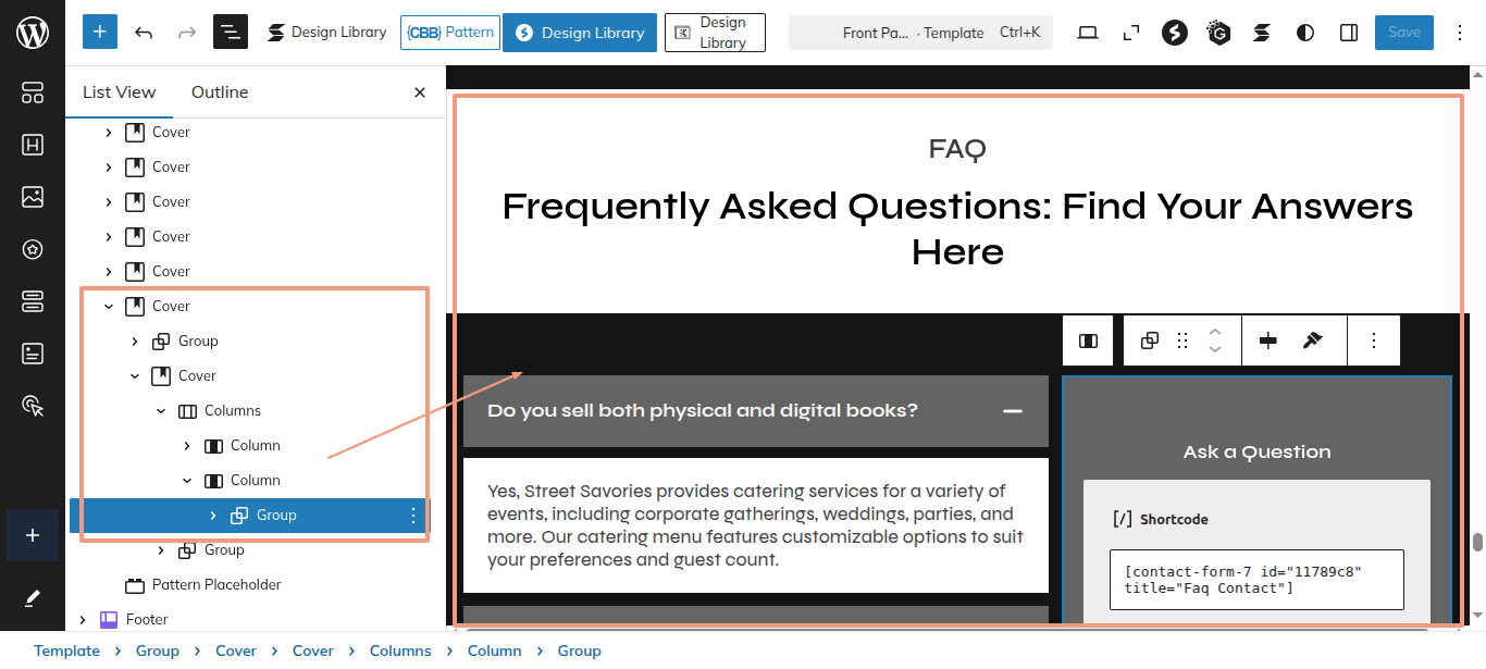 This is the process of creating and customizing the FAQ section.
