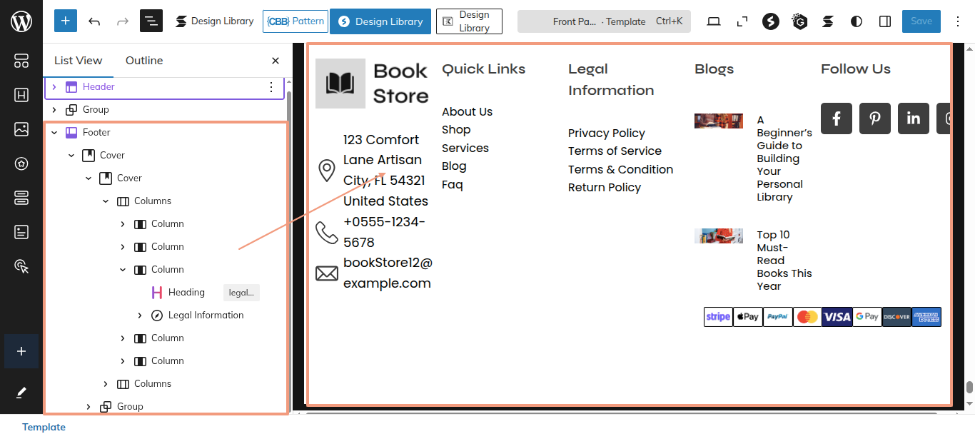 This is the process of creating and customizing the Footer section.