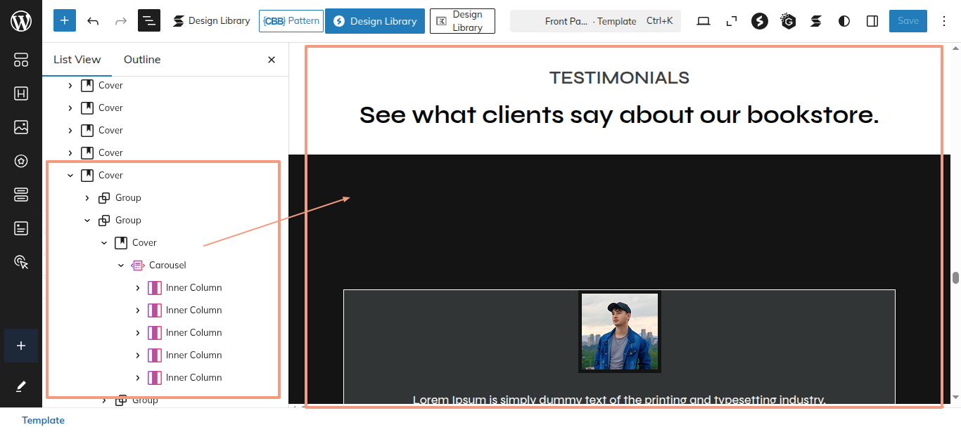 This is the process of creating and customizing the TESTIMONIALS section.