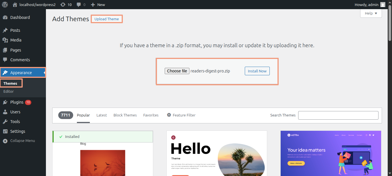 1 Installing Using the WordPress Theme Installer
