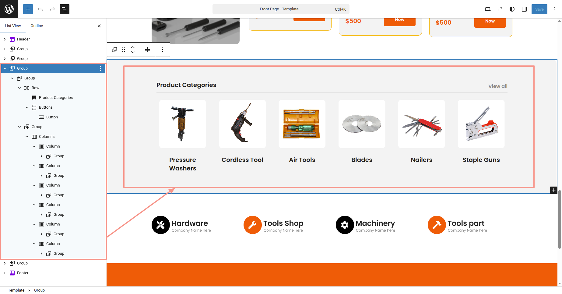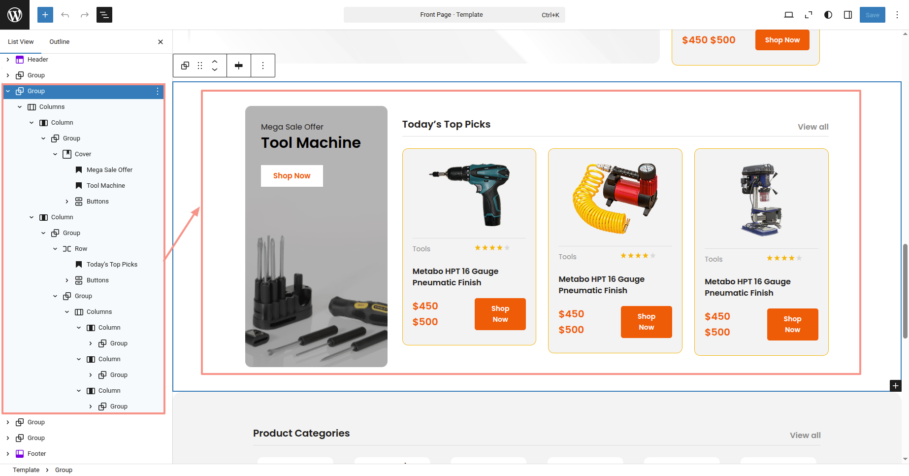 This is the process of creating and customizing the Product Categories section.