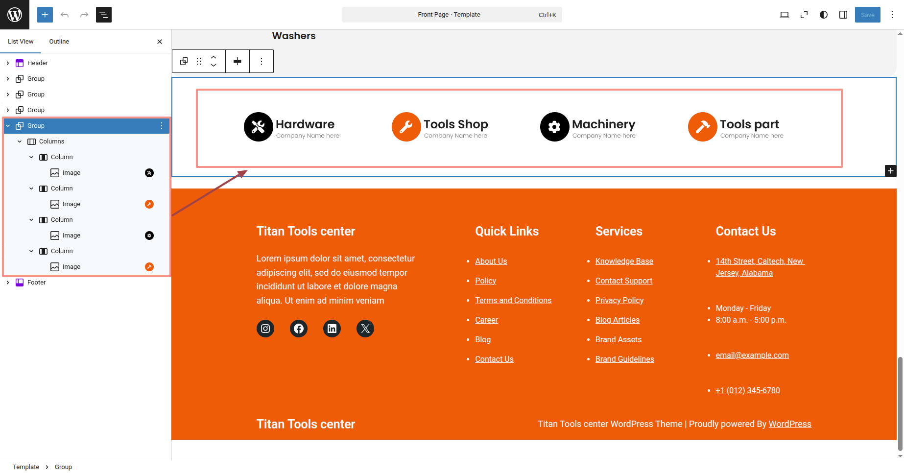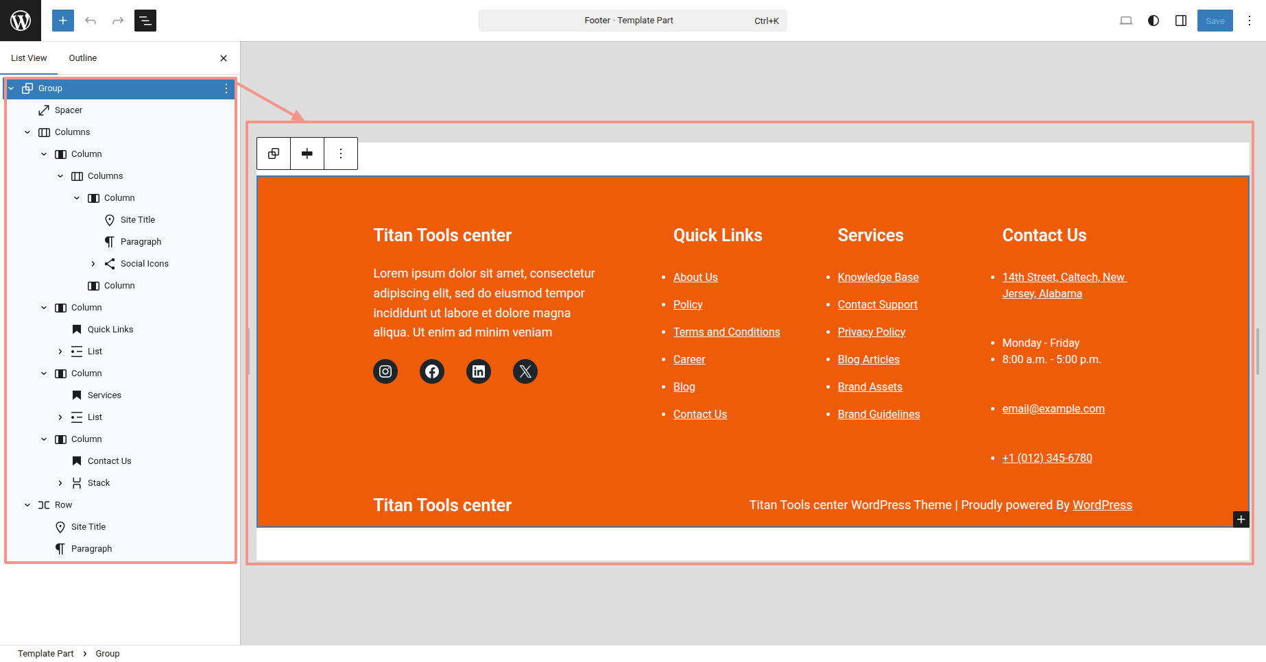 This is the process of creating and customizing the Footer section.