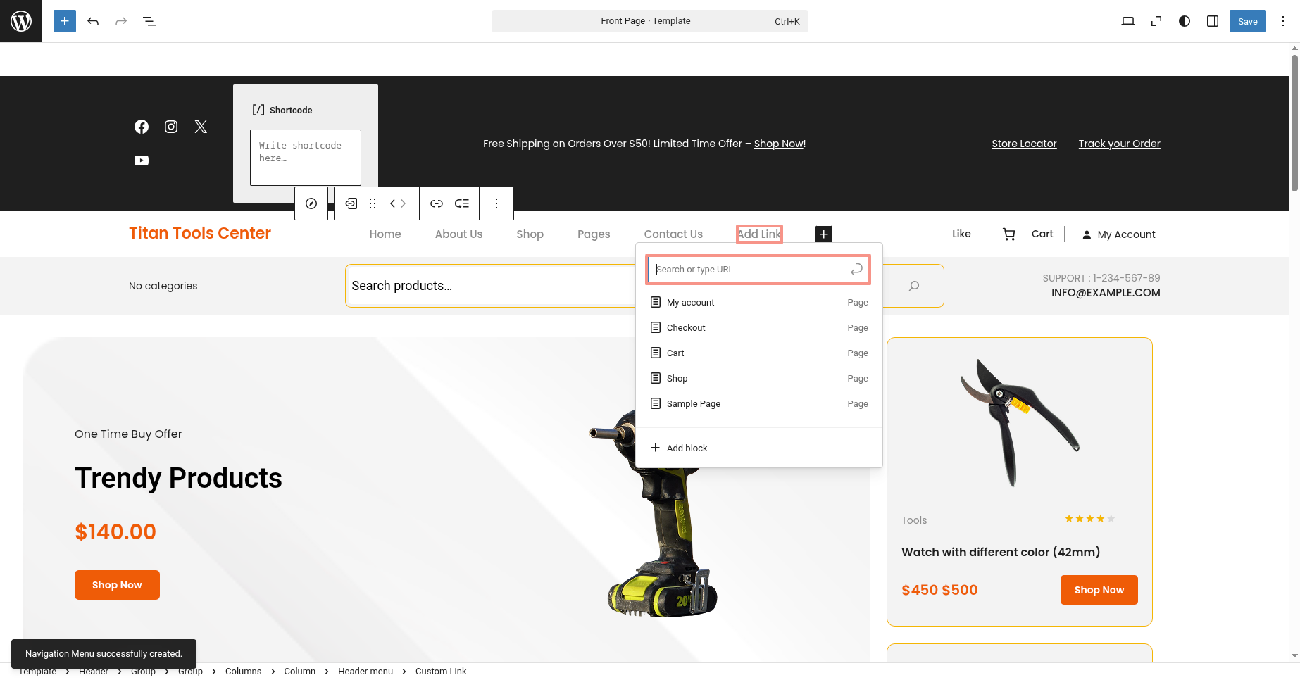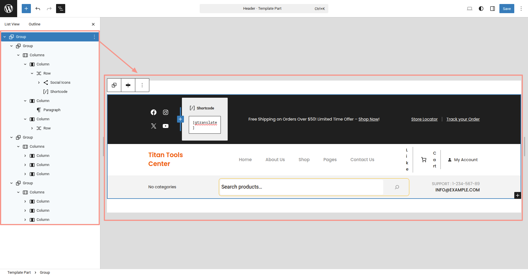 This is the process of creating and customizing the Header section.