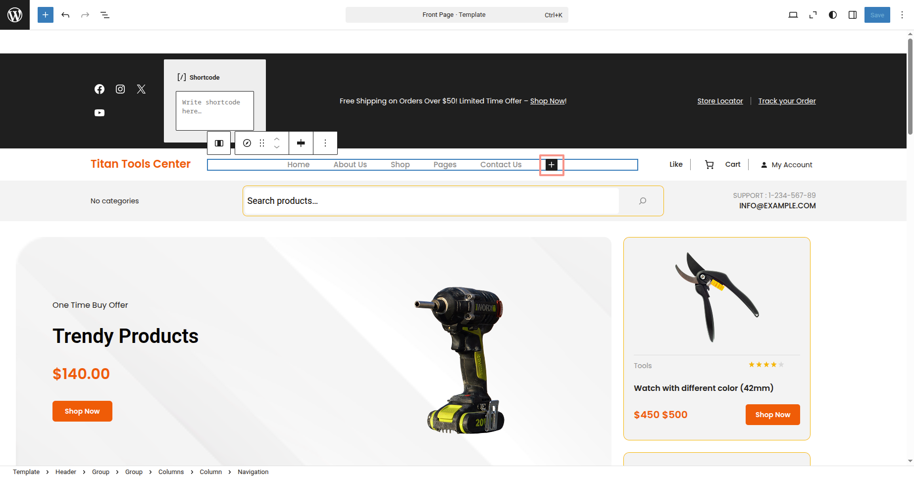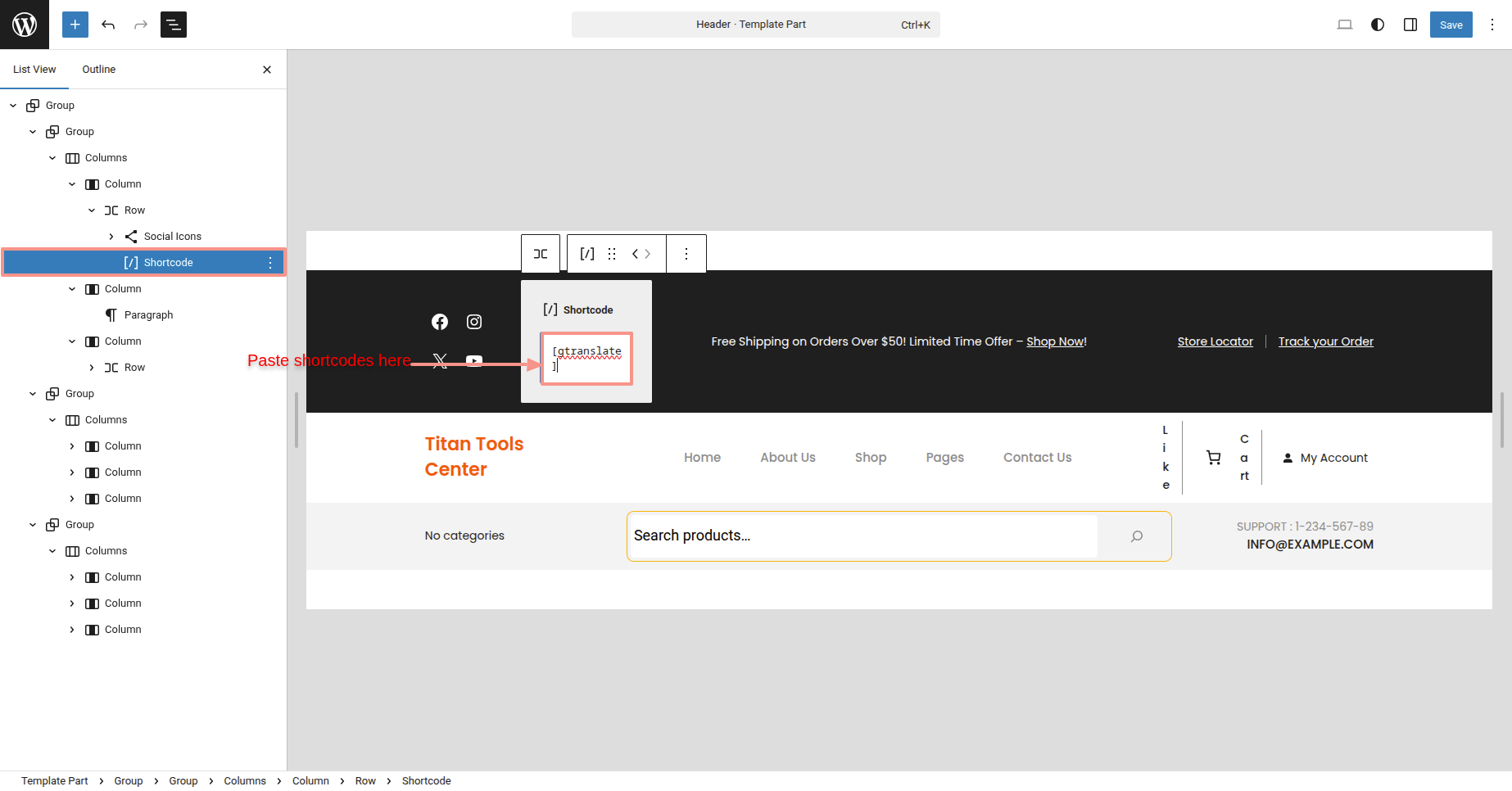 Just press on Header Section there to make changes.