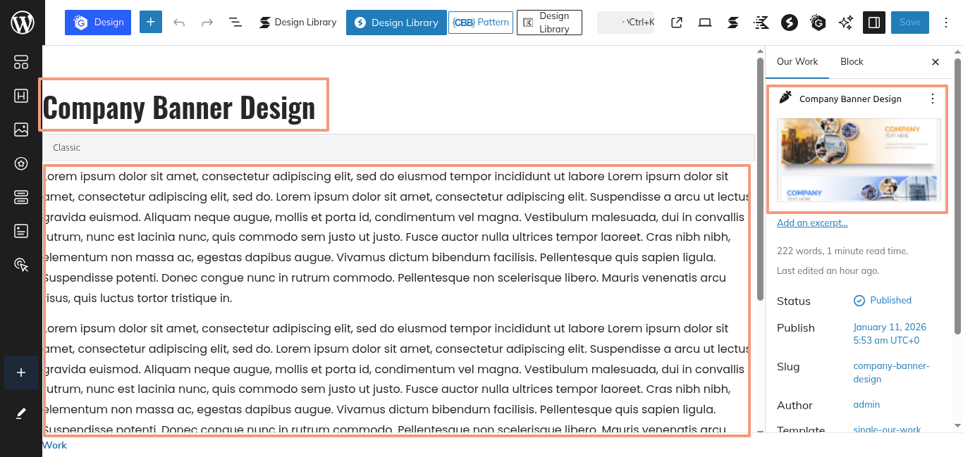 This is the process of creating and customizing the Our Works section.