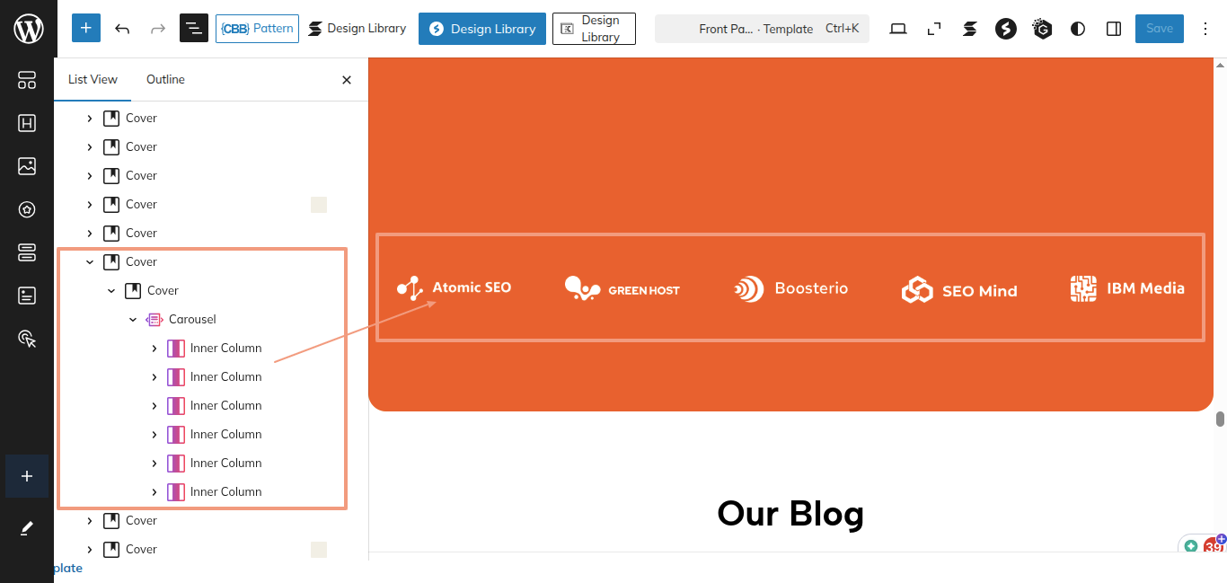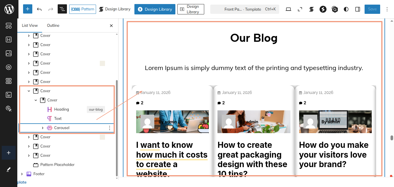 This is the process of creating and customizing the Our Blogs section.
