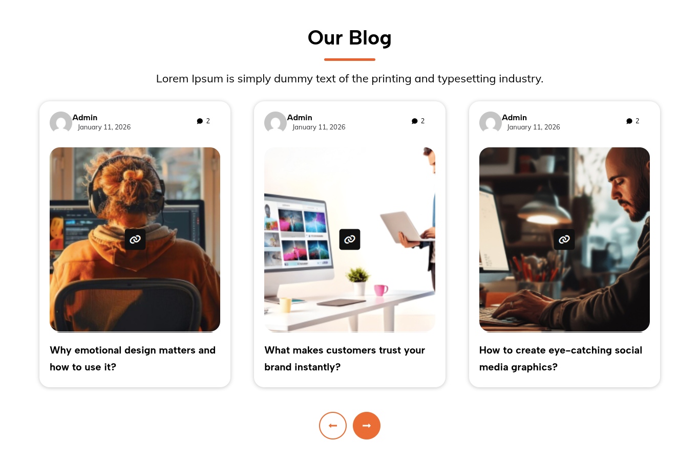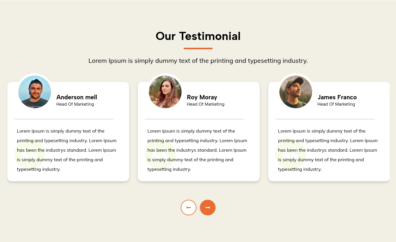 Navigating through the themes in the Our Testimonial section is a breeze.
