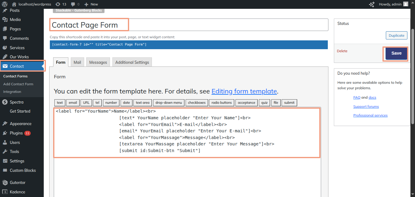 -> Next, choose "Contact Forms" from "Contact"