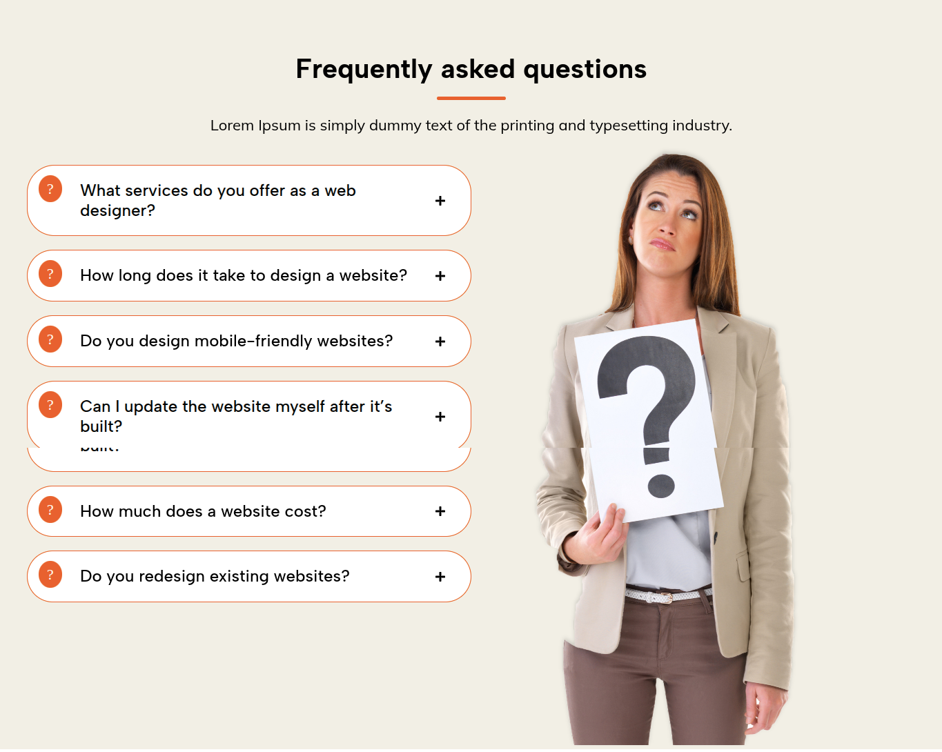 This is the process of creating and customizing the Frequently asked questions section.
