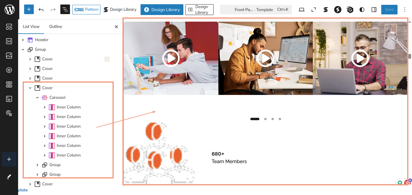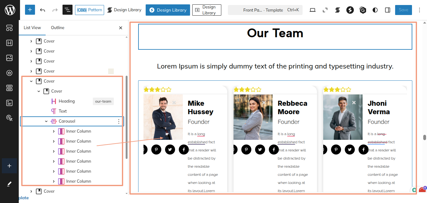 This is the process of creating and customizing the Our Team section.