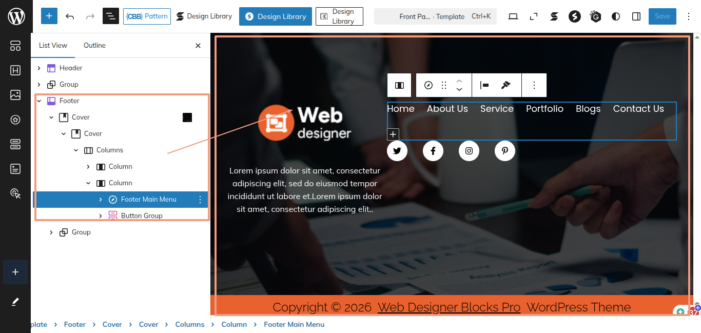 Navigating through the themes in the Footer section is a breeze.
