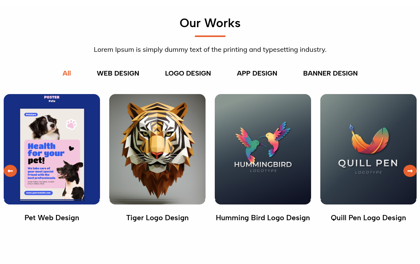 Within this section, the content is taken by the Our Works named as "All Works" to make any content changes, follow these steps::