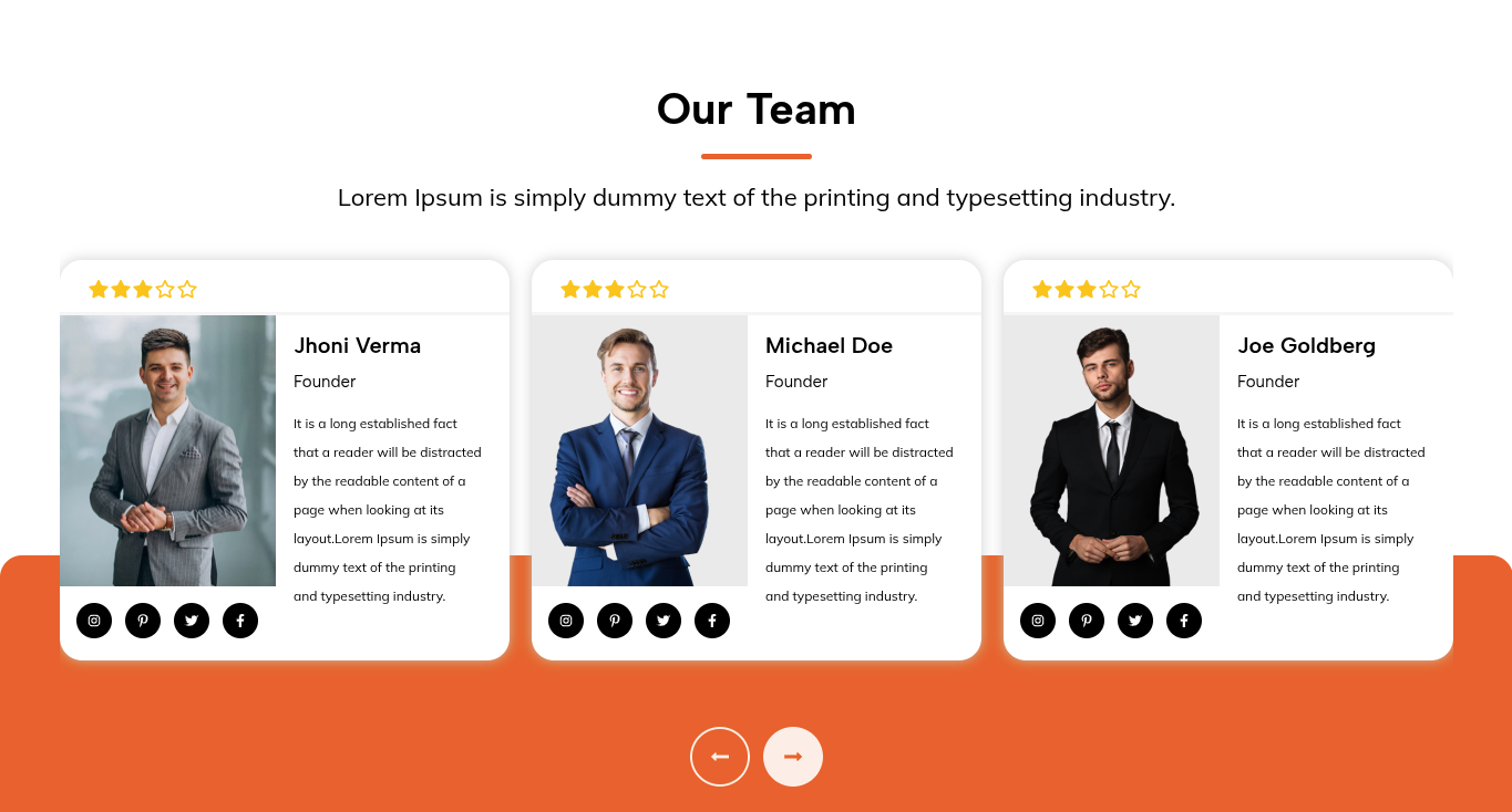 Navigating through the themes in the Our Team section is a breeze.