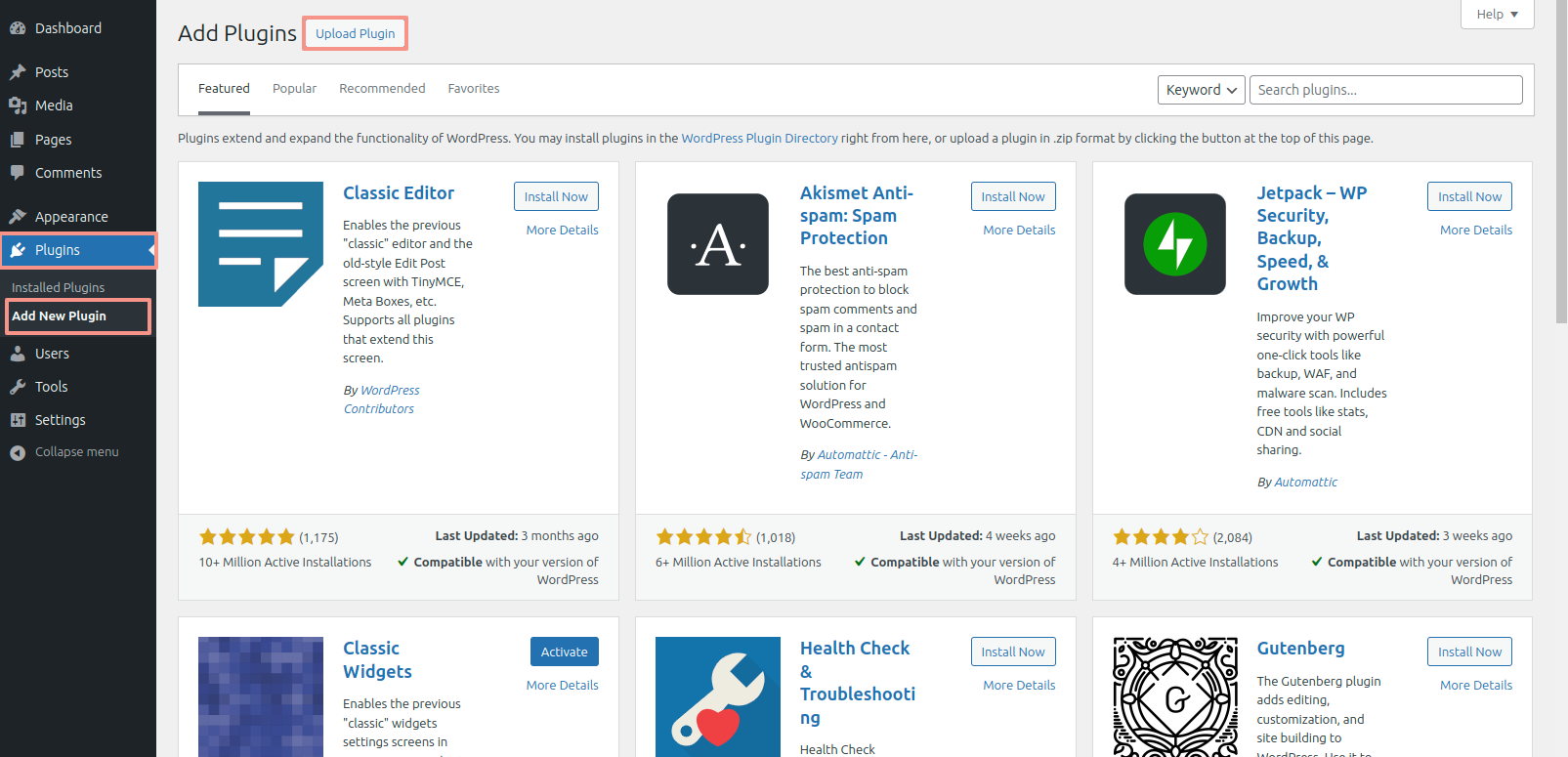 Click on the option Install Plugins to initiate the configuration guide and get started immediately.