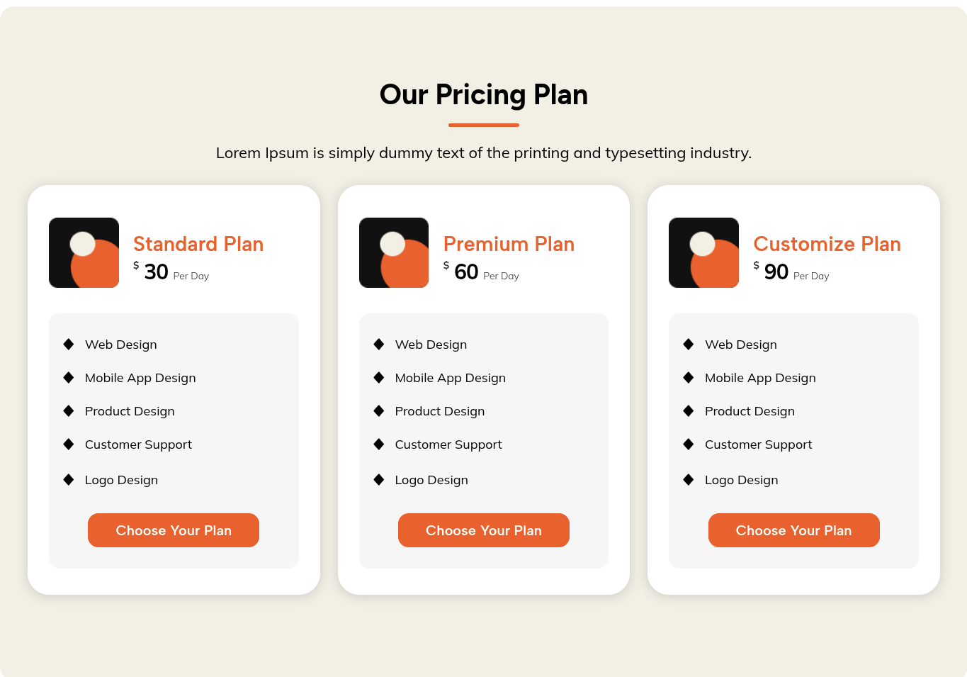 Navigating through the themes in the Our Pricing Plan section is a breeze.