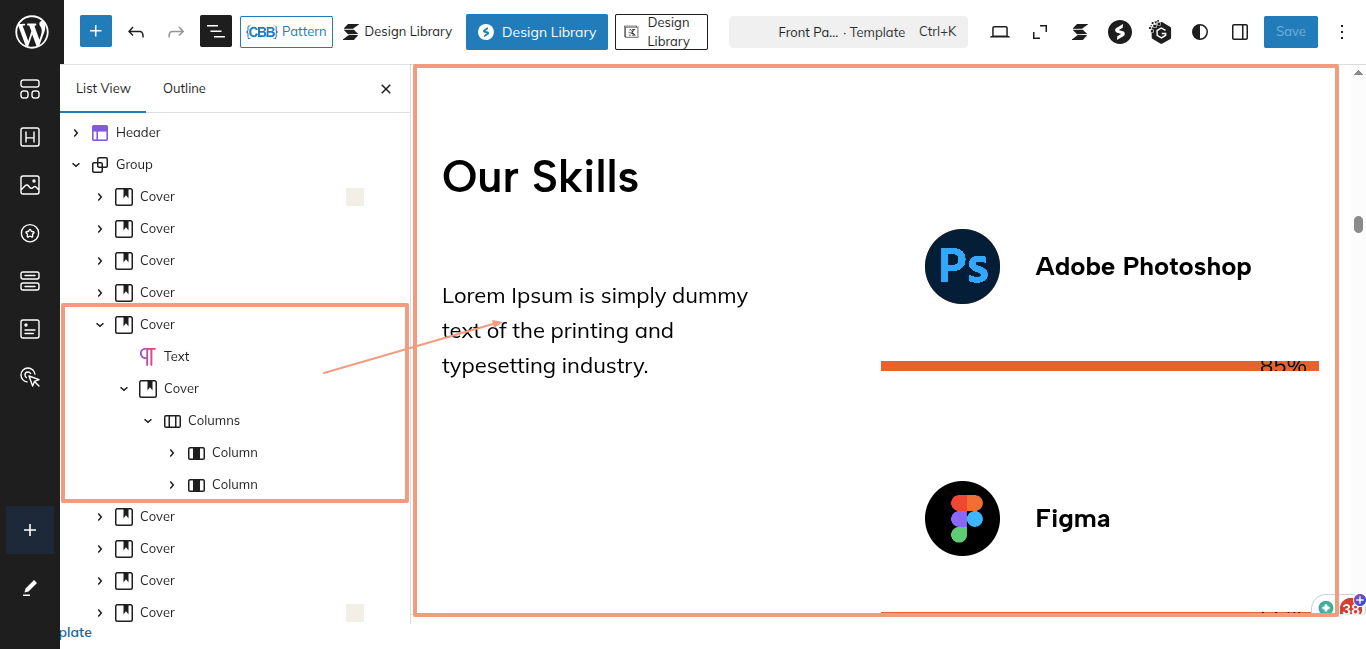 This is the process of creating and customizing the Our Skills section.
