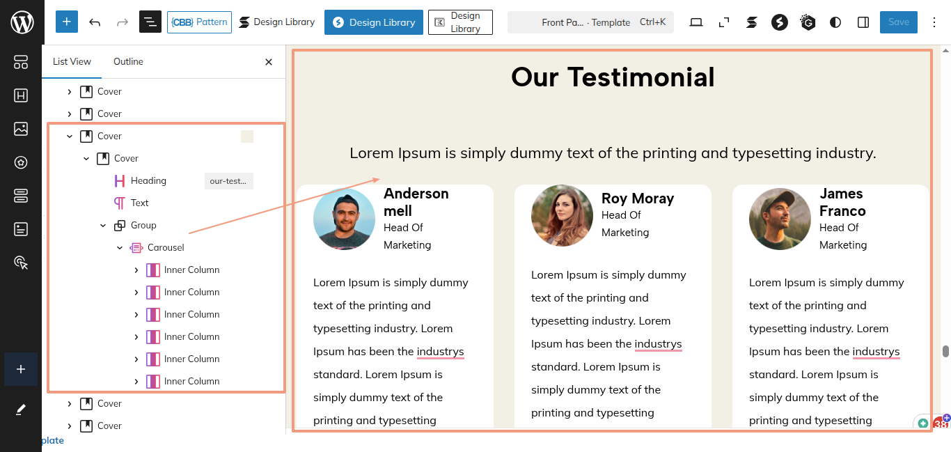 This is the process of creating and customizing the Our Testimonial section.